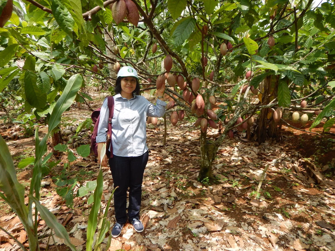 Andi Sitti Asmayanti, Head of Cocoa Life South East Asia, at a cocoa farm
